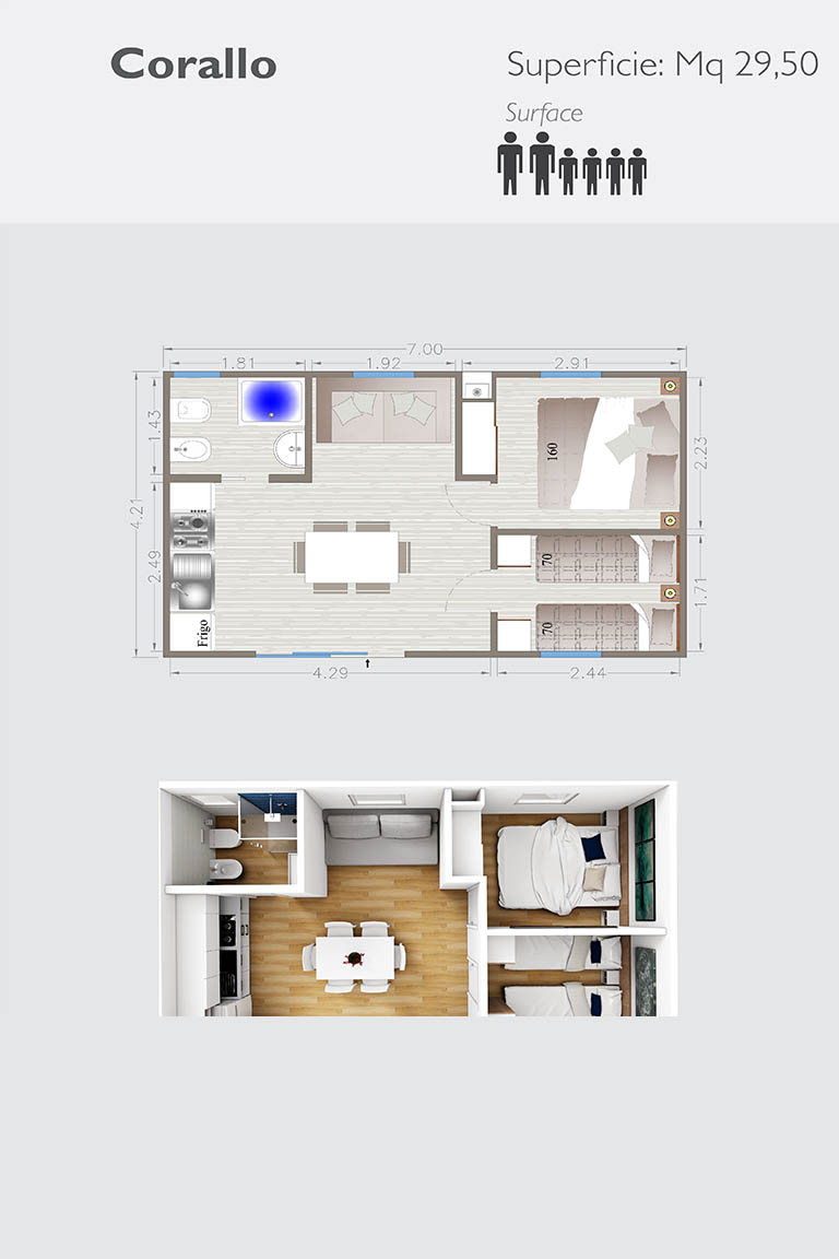 Thus, the Marina line sprouted up in VPF house, directly derived from Living. The Marina VPF completes a line of Mobile Homes that are already widely varied and capable of satisfying the tastes of demanding customers.
